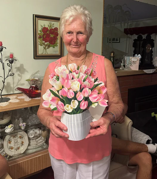 Thank you for the beautiful card! I organised it to be sent directly to my grandmother for her 90th birthday! She had it set up proudly next to her birthday cake. She loves that it will last forever and that she doesn’t have to water it.